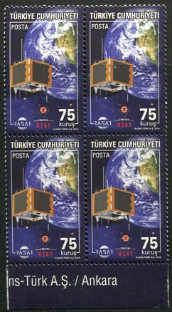 Turkey: 2010 (17 May). Rasat Earth Observation Satellite unmounted mint block of four set. Isfila 4228