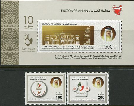 Bahrain: 2011 (1 December). Women’s Day unmounted mint set and miniature sheet. Mi. 888/889 + Block 27, Sg. 841/842, MS843