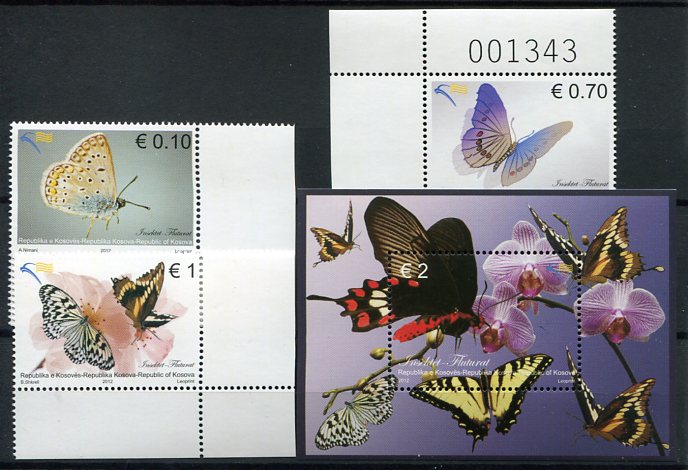 Kosovo: 2012 Butterflies corner marginal unmounted mint set and miniature sheet.