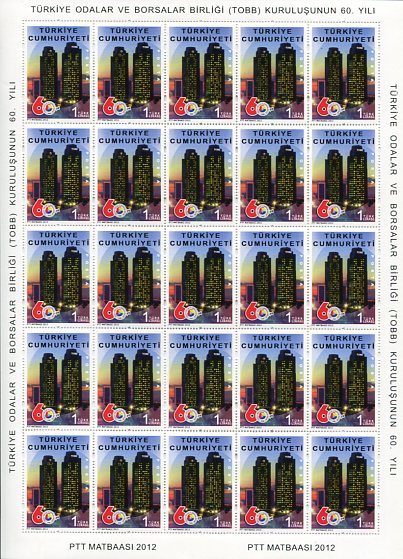 Turkey: 2012 (17 May). Turkish Chamber of Commerce Union unmounted mint complete sheet of 25 set. Isfila 4358. **
