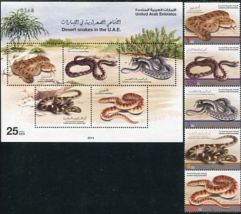 United Arab Emirates: 2012 (1 November). Fauna. Desert Snakes unmounted mint set and miniature sheet. Sg. 1123a, MS1128