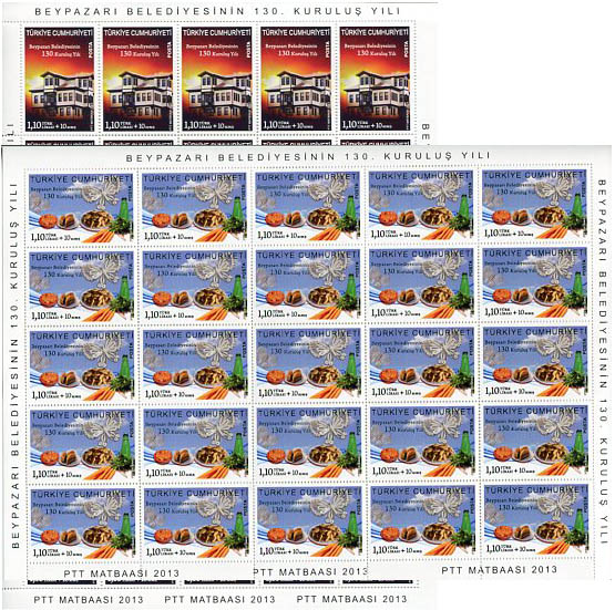 Turkey: 2013 (29 May). Beypazari Municipality unmounted mint complete sheet of 25 set. Isfila 4438/4439. **