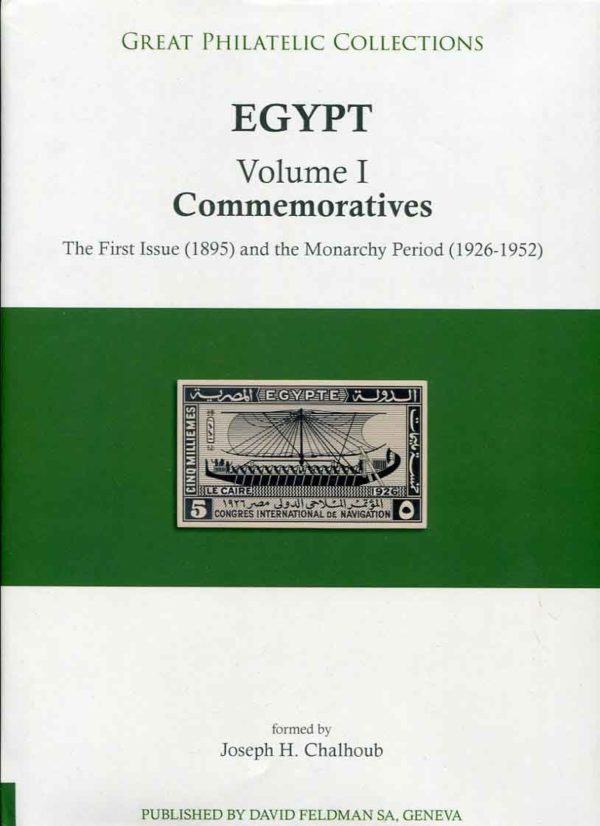 Egypt: Great Philatelic Collections series from David Feldman SA ‘Egypt volume 1 Commemorative’s. The First Issue (1895) and the Monarch Period (1926-1952). Joseph H. Chalhoub collection’. Hardbound with dust-jacket, published 2017, 325 pages, full colour, limited edition of 50 copies. Free UK post, Worldwide is £20,
