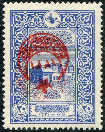 Ottoman Empire: 1916 (29 February). Overprinted star & crescent for War Orphans Tax 20pa City Post Anniversary commemorative stamp mint o.g. with overprint inverted error. Isfila 606 SE55