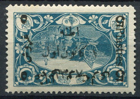 Anatolian Government: 1921 (1 December). Overprinted on various Ottoman stamps to commemorate liberation of Adana and withdrawal of the French Forces 5pi surcharged on 2pa mint o.g. with overprint inverted error. Isfila 1060 SE55