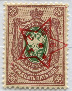 Azerbaijan – Transcaucasian Socialist Federative Soviet Republic: 1923 (15 April). The Arms types of Russian stamps handstamped in red or black at Tbilisi 35k sold at 35,000r unmounted mint. Sc. 4