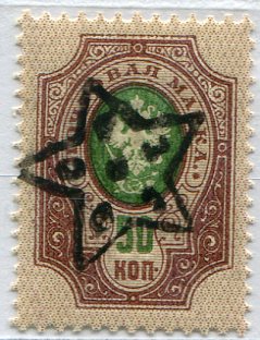 Azerbaijan – Transcaucasian Socialist Federative Soviet Republic: 1923 (15 April). The Arms types of Russian stamps handstamped in red or black at Tbilisi 50k sold at 50,000r unmounted mint. Sc. 5