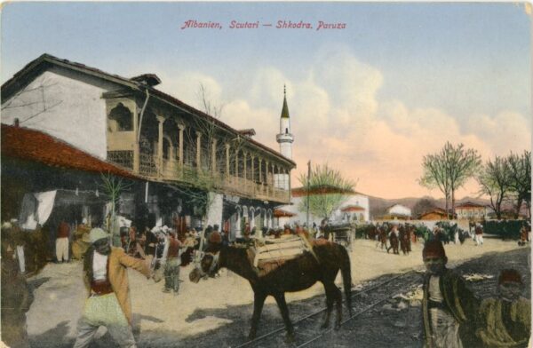 Albania: 1917 (21 June). Postcard titled ‘Scutari – Shkodra. Paruza’ (ed. Isidor Munzer) to Reichberg, Germany struck by Military unit and Censor handcachets.