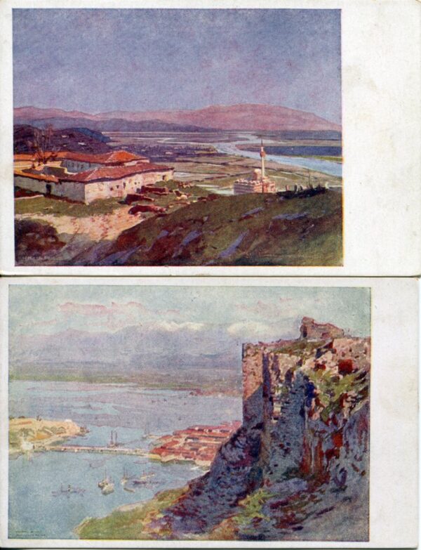 Albania: Unused watercolour postcards of Shkoder and Lezhe produced for Red Cross War Welfare Office (Rotes kreuz, kriegsfürsorgeamt kriegshilfsbüro).
