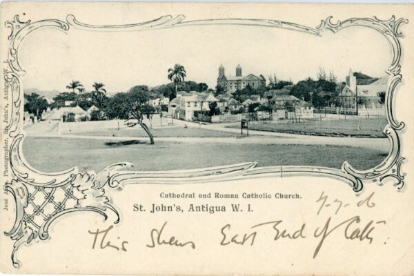 Antigua: 1906 postcard titled ‘Cathedral and Roman Catholic Church’ franked with Leeward Island 1d. tied by Antigua B.W.I. datestamp