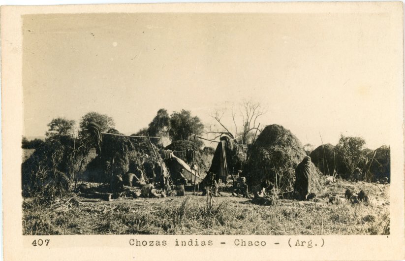 Unused photo postcard titled ‘Chozas indios – Chaco’.