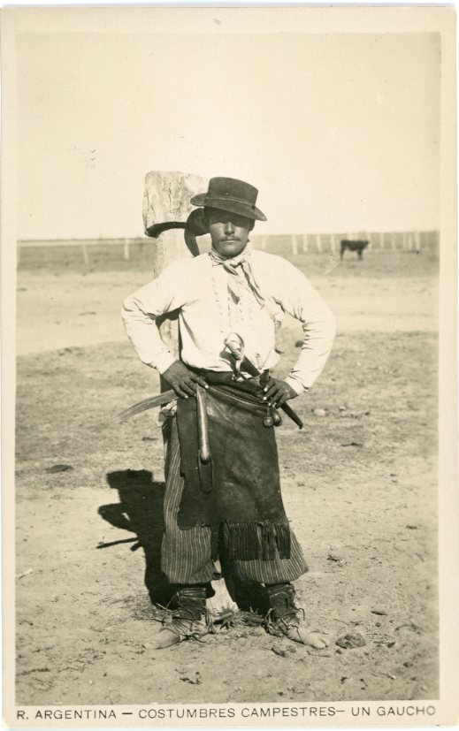 Unused photo postcard titled ‘Costumbres Campestres – Un Gaucho’.