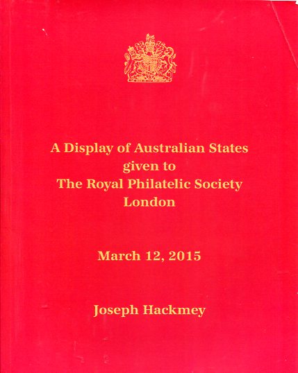 A Display of Australian States given to The Royal Philatelic Society London by Joseph Hackmey, 21 March 2015, 87 pages, fully illustrated in colour. Small crease on front cover.