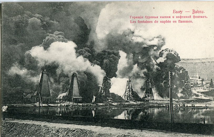 Unused postcard titled ‘Bakou – Les fontaines de naphte en flammes