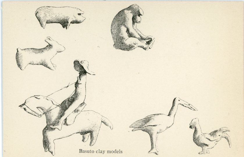 Lesotho – Basutoland: Unused Bushmen Paintings postcard titled ‘Basuto clay models’. ed. Morija printing #10