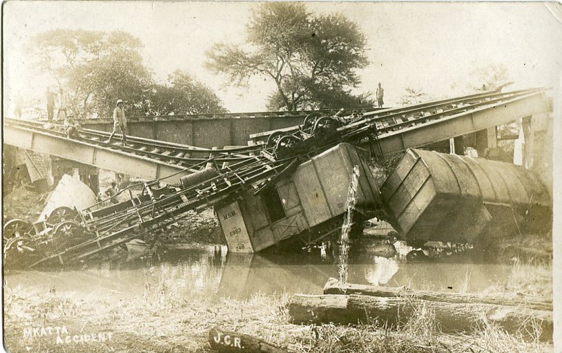 British East Africa: Unused photocard of derailed train in Mkatta, German East Africa