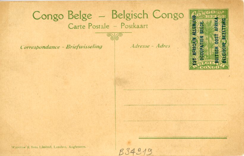 Belgian Congo: Unused 5c. Belgian Occupation of German East Africa picture stationery card of Biharamulo.
