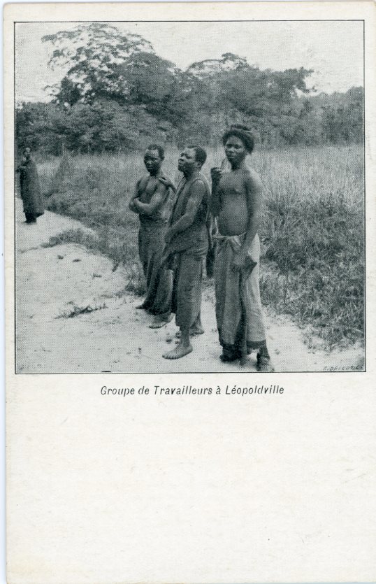 Belgian Congo: Unused postcard titled ‘Groupe de Travailleurs a Leopoldville’.