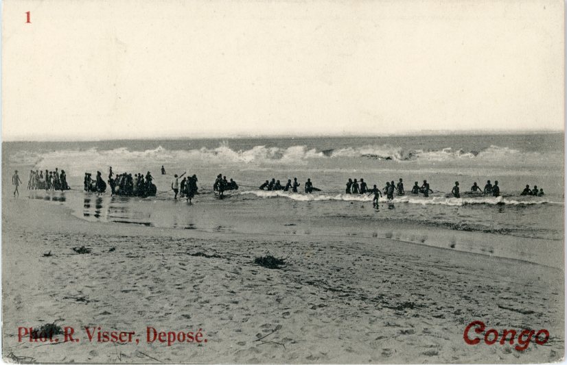 Belgium Congo: Unused postcard of locals at the beach. photo R. Visser