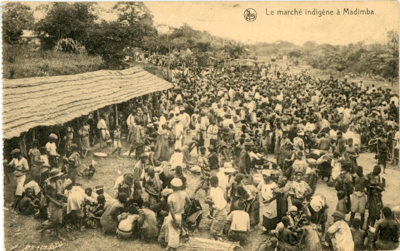 Unused postcard titled ‘Le marche indigene a Madimba’.