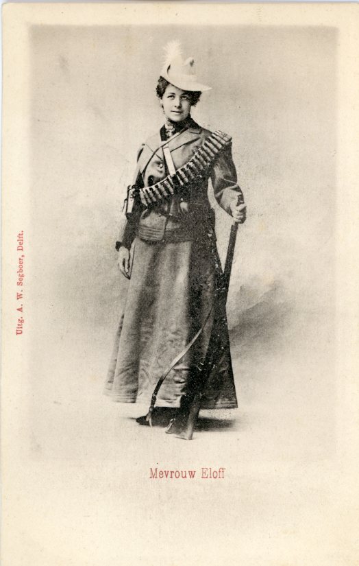 South Africa – Boer War: Unused postcard titled ‘Mevrouw Eloff’.