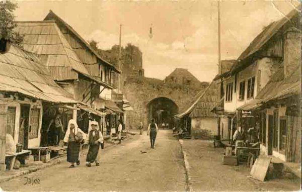 Bosnia: Jajce postcard. Stamps fallen on reverse with part Sarajevo cancel