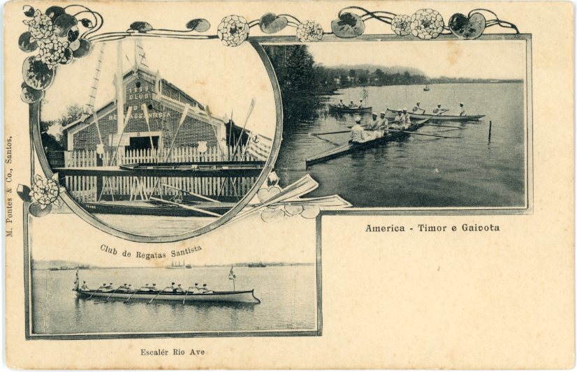 Unused multi view postcard of Regatta Club and Rowing Racers.