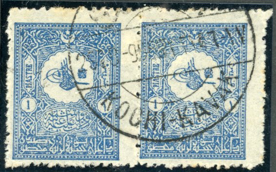 Bulgaria – Ottoman Post Offices: 1901 internal issue 1pi. pair struck by KOSIKAVAK – KOCHI-KAVAK (vilayet Edirne, BG #97, RR) datestamp.