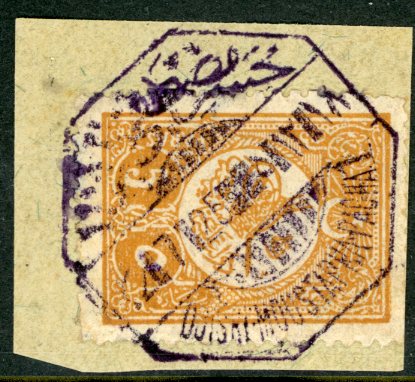Bulgaria – Ottoman Post Offices: 1909 issue of 5pa. on piece tied by CISR-I MUSTAFA PASA 1 – DJISRI-MOUSTAPHA-PACHA 1 (vilayet Edirne, BG #30a, RRR) datestamp.