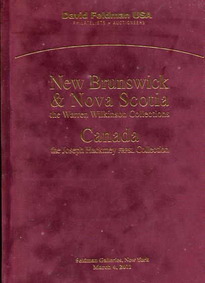 Auction Catalogue: 2011 (4 March). New Brunswick & Nova Scotia The Warren Wilkinson and Canada The Joseph Hackmey Collections, David Feldman, 387 lots, richly illustrated, no markings, velvet bound.