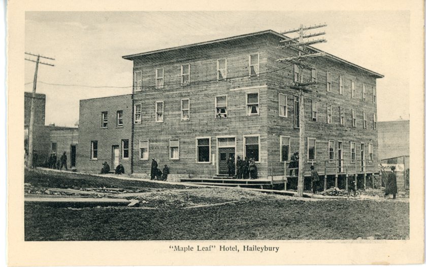 Unused postcard titled ‘Maple Leaf Hotel, Haileybury’.