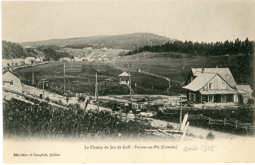 Unused postcard titled ‘Le Champ du Jeu de Golf – Pointe-au-Pic’.