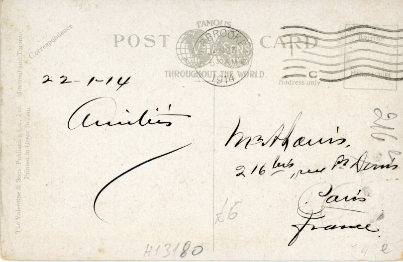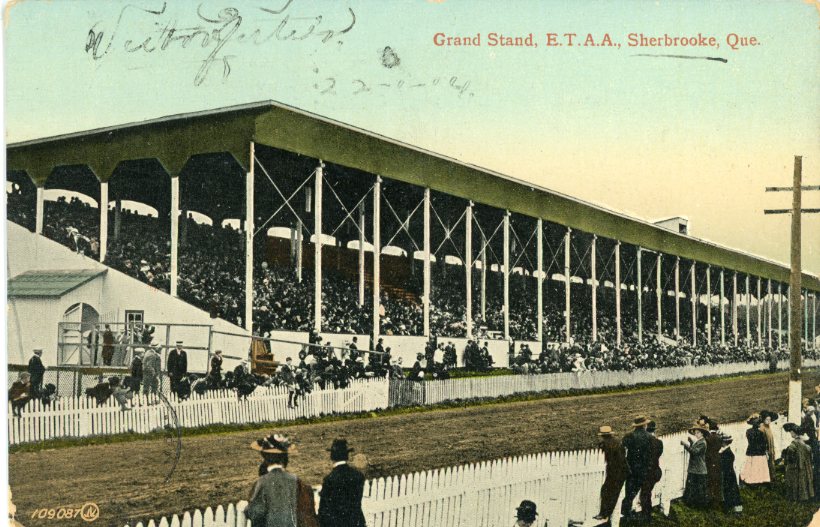 1914 postcard to Paris titled ‘Grand Stand, E.T.A.A., Sherbrooke’.
