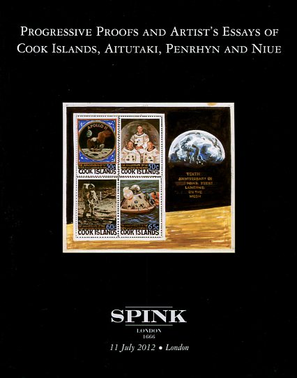 Auction Catalogue: 2012 (11 July). Progressive Proofs and Artist’s Essay of Cook Islands, Aitutaki, Penrhyn and Niue. The Collection of the Late Mr. Finbar Kenny, Spink, sale # 12040, 223 lots, richly illustrated, no markings.