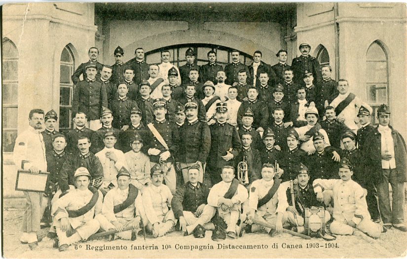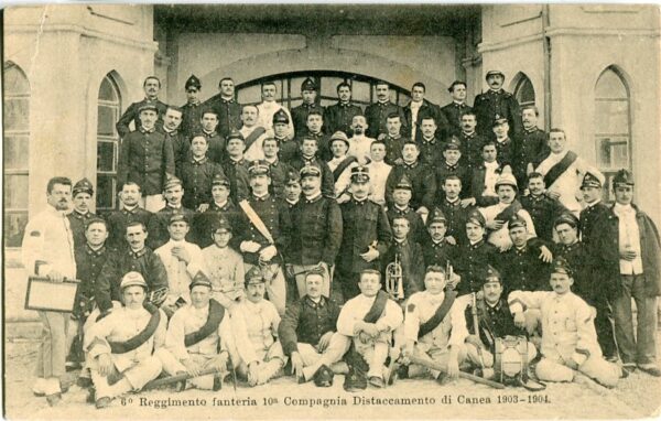 Crete – Greece: Unused postcard titled ‘6 Reggimento fanteria 10a Compagnia Distaccamento de Canea 1903-1904’. ed. E.A. Cavaliero