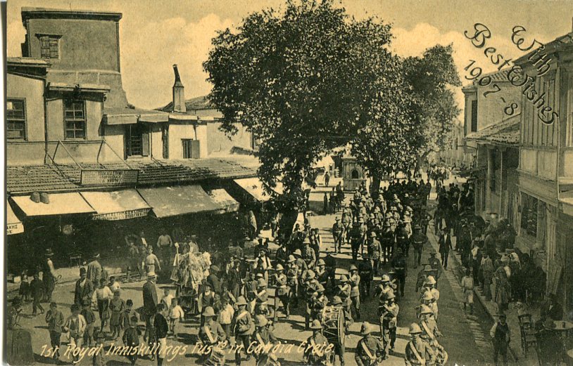Greece – Crete: Unused postcard titled ‘1907-8. 1st Royal Inniskilling Fusiliers in Candia’. ed. Behaeddin#176