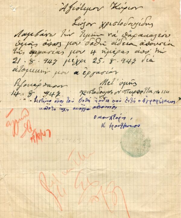Cyprus: 1947 (19 August). A petition struck by V.R. ANAVYSSOS RIZOKARPASSO Mukhtar seal.