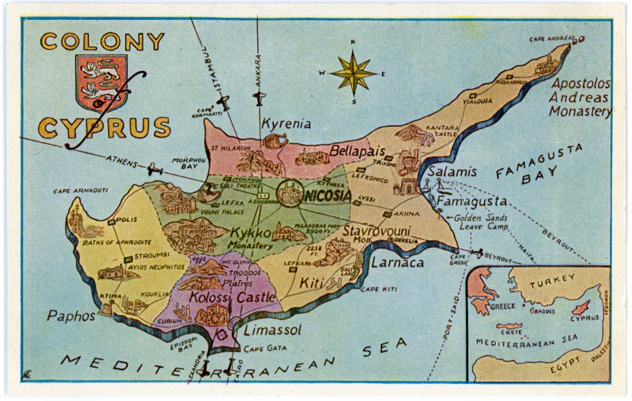 Cyprus: Unused Colony of Cyprus Map postcard.