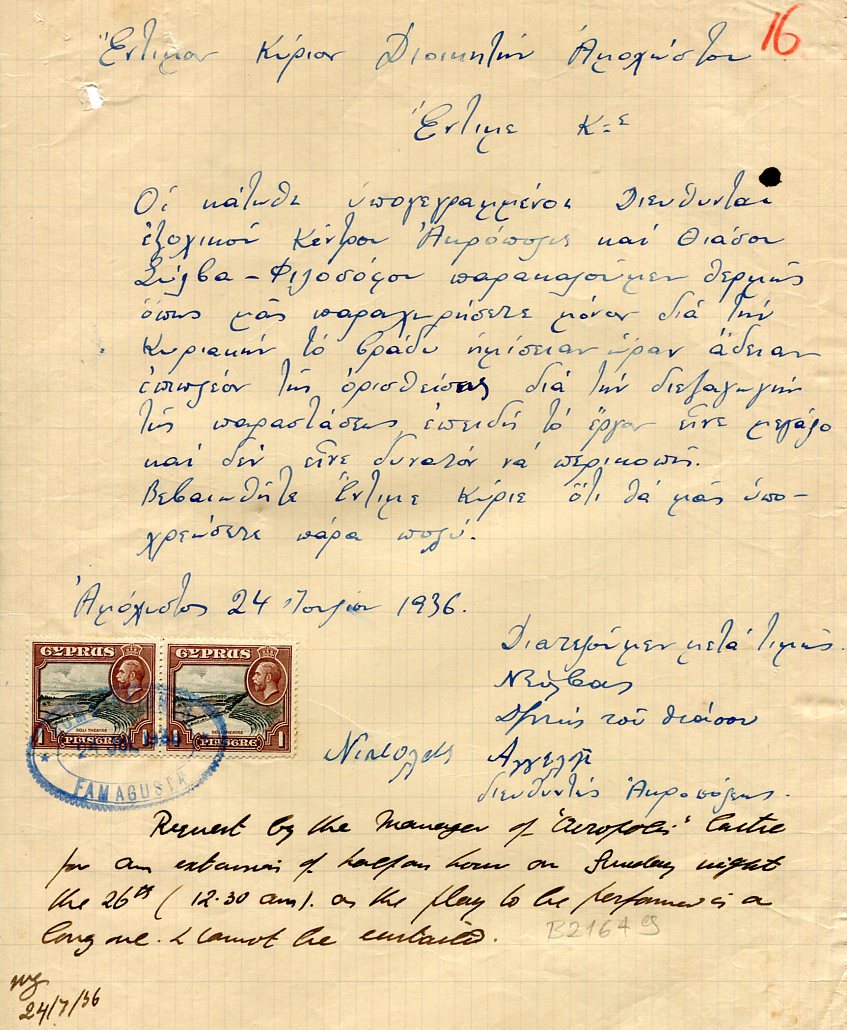 Cyprus Famagusta 1936 KGV Doc.