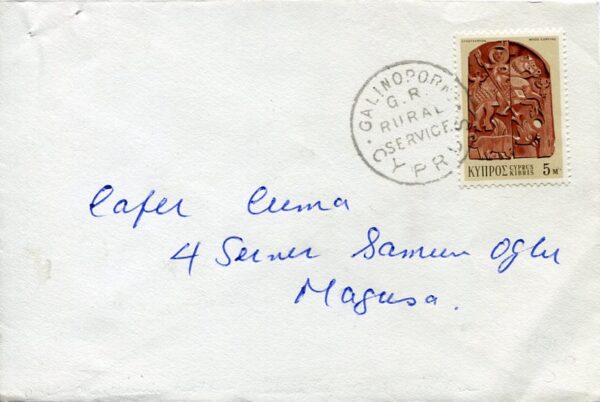 Cyprus: Local cover franked with 5m and tied by G.R. GALINOPORNI (Kale Burnu) Rural Service cds.