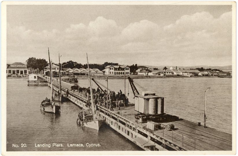 Cyprus: Unused postcard titled ‘Landing Piers, Larnaca’.