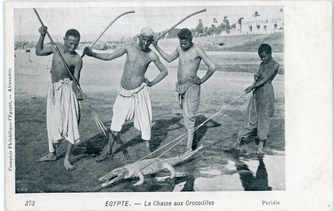 Unused postcard titled ‘La Chasse aux Crocodiles’.