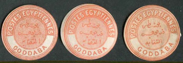 Egypt: POSTES EGYPTIANNES inscribed three mint o.g. and unused interpostal seal of GODDABA.