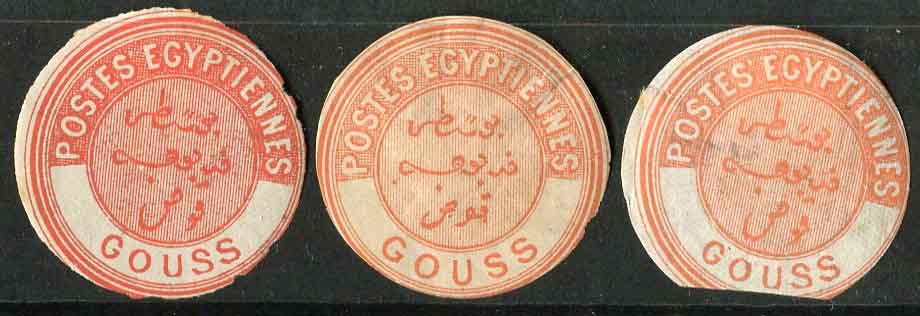 Egypt: POSTES EGYPTIANNES inscribed three mint o.g. and unused interpostal seal of GOUSS.