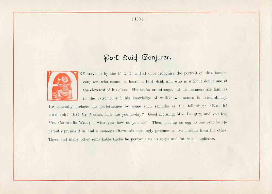 Egypt: P&O sketches by Harry Furniss titled “Port Said Conjurer”. 288 x 205mm.