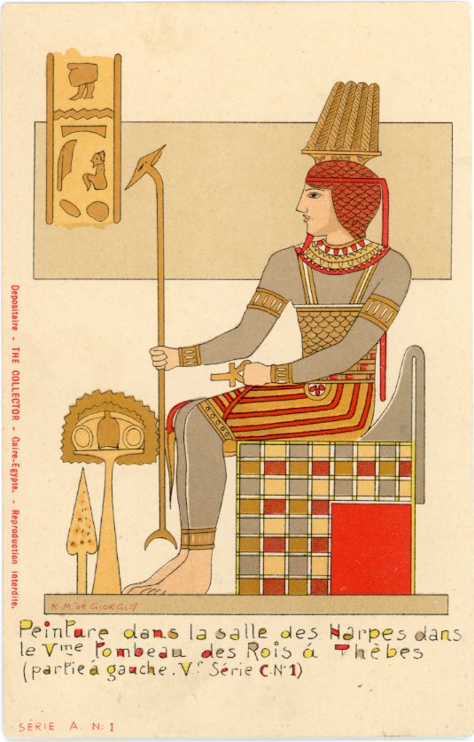 Egypt: Unused Pharoah series postcard titled ‘Peinture dans la salle des Narpes dans le Vme Tombeau des Rois a Thebes’.