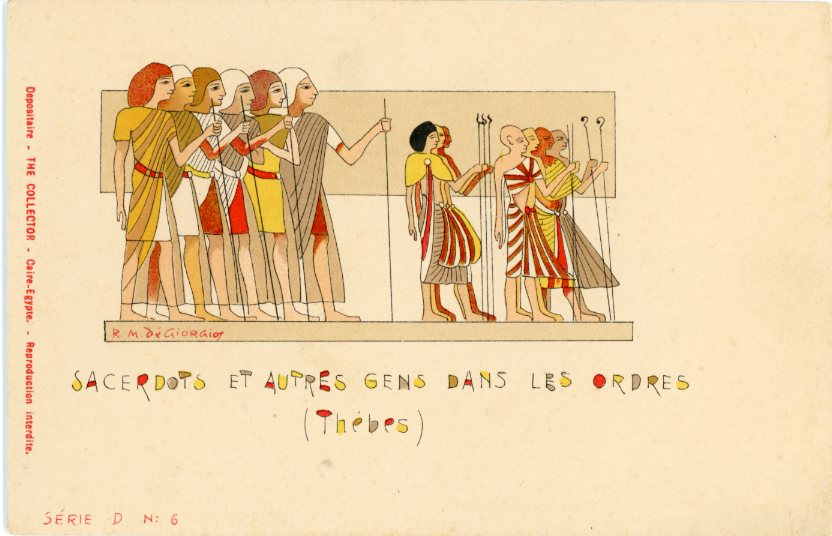Egypt: Unused Pharoah series postcard titled ‘Sacerdots et Autres Gens Dans les Ordres (Thebes)’.