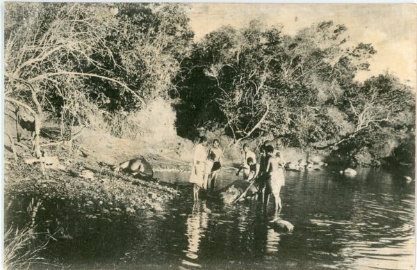 Unused postcard titled ‘Chasse a l’hippopotame’.