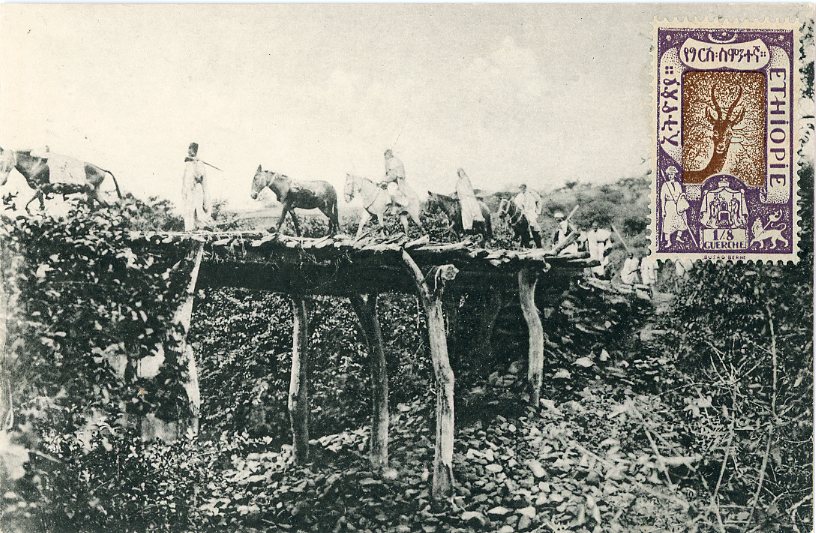 Ethiopia: Unused postcard titled ‘Caravane en route’ franked with 1/8g. ed. E.H. Schrenzei