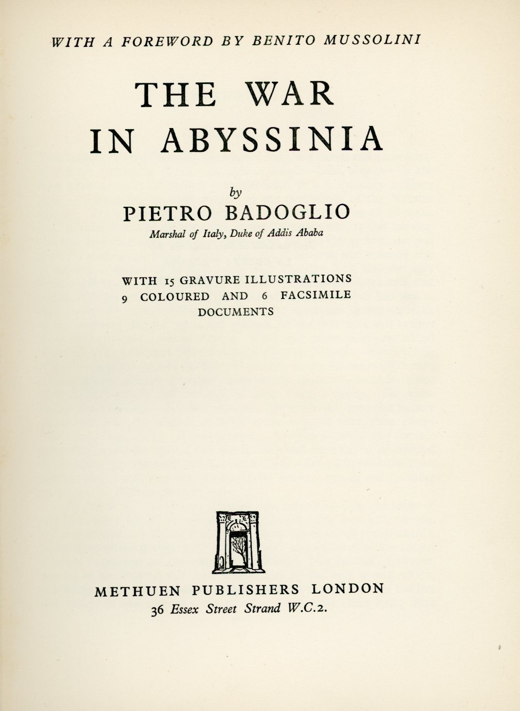 Ethiopia: Lion by the Tail : the story of the Italian-Ethiopian War / by Thomas M. Coffey, published by London: Hamilton, 1974. SBN 0241024358, 369 pages, hardbound with dust jackets. 160 x 245mm.
